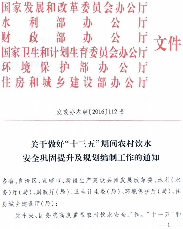发改办农经〔2016〕112号《关于做好“十三五”期间农村饮水安全巩固提升及规划编制工作的通知》