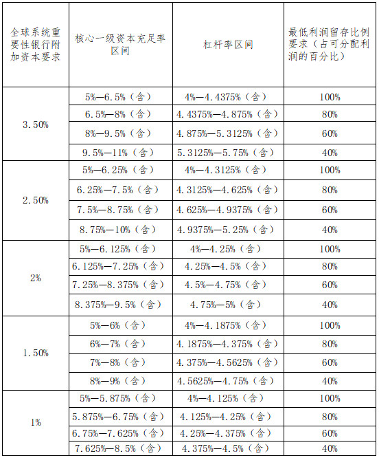 (一)核心一级资本充足率不得低于5%。