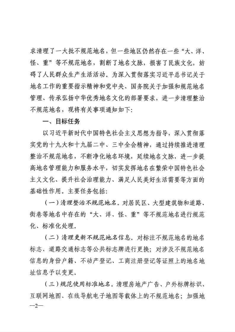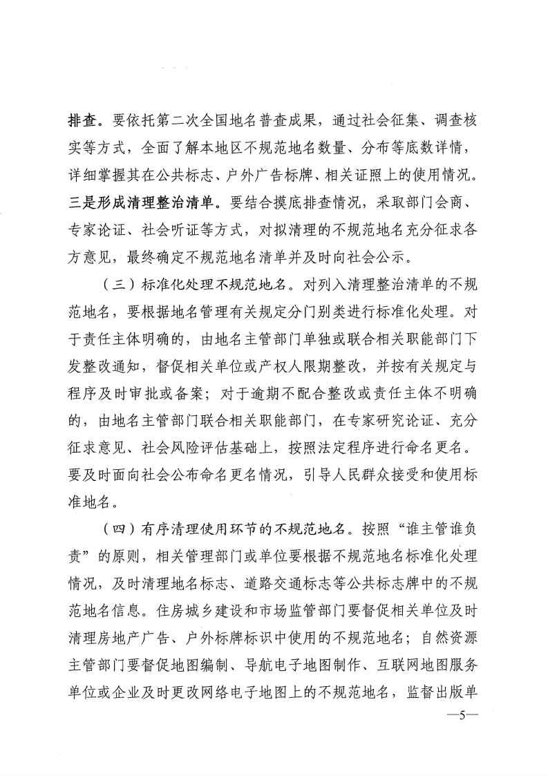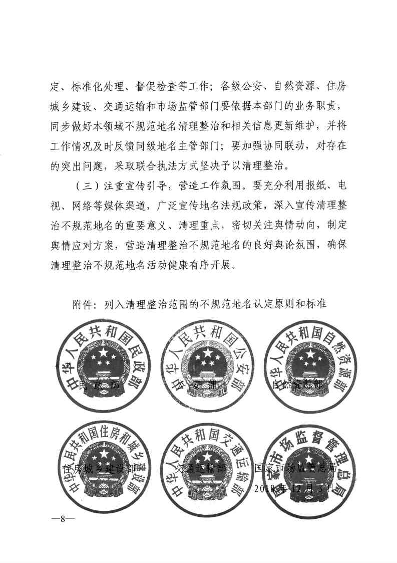 民政部公安部自然资源部住房城乡建设部交通运输部国家市场监管总局关于进一步清理整治不规范地名的通知
