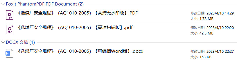 《选煤厂安全规程》(AQ1010-2005)【全文附高清无水印PDF+DOC/Word版下载】