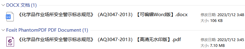 《化学品作业场所安全警示标志规范》(AQ3047-2013)【全文附高清无水印PDF版+DOC/Word版下载】