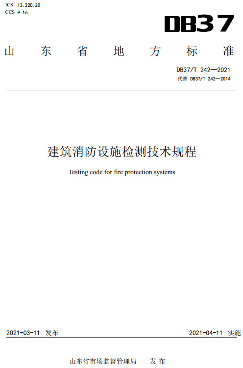 《建筑消防设施检测技术规程 》(DB37/T242-2021)【山东省地方标准】【全文附高清无水印PDF+DOC/Word版下载】