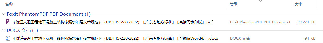 《轨道交通工程地下混凝土结构渗漏水治理技术规范》(DBJ/T15-228-2022)【广东省地方标准】【全文附高清无水印PDF+DOC/Word版下载】