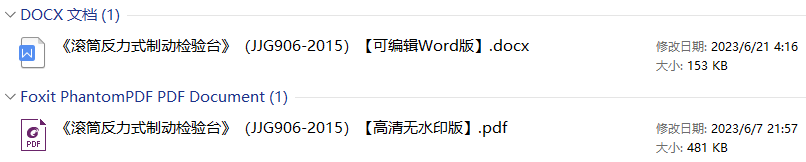 《滚筒反力式制动检验台》(JJG906-2015)【国家计量检定规程】【全文附高清无水印PDF版+DOC/Word版下载】