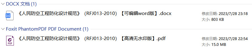 《人民防空工程防化设计规范》(RFJ013-2010)【全文附高清无水印PDF+DOC/Word版下载】