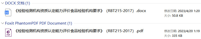 《检验检测机构资质认定能力评价食品检验机构要求》(RB/T215-2017)【全文附高清无水印PDF+DOC/Word版下载】