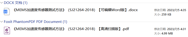 《MEMS加速度传感器测试方法》(SJ21264-2018)【全文附高清PDF+DOC/Word版下载】
