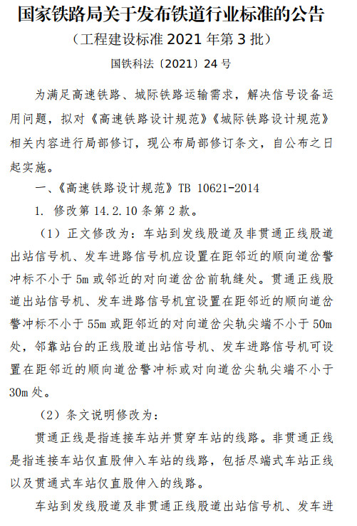 中文名称:高速铁路设计规范【附条文说明】【附2019年局部修订条文】【附2021年局部修订条文】