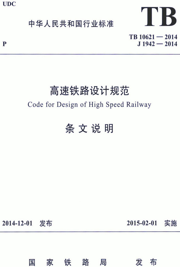 《高速铁路设计规范》(TB10621-2014)(附条文说明)【全文附高清无水印PDF+DOC/Word版下载】