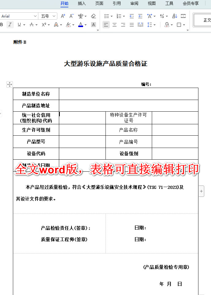 《大型游乐设施安全技术规程》(TSG 71-2023)【全文附高清无水印PDF+Word版下载】