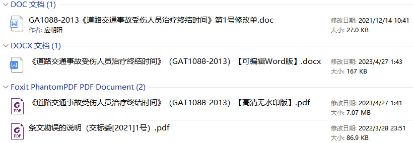《道路交通事故受伤人员治疗终结时间》(GA/T1088-2013)【全文附高清无水印PDF+DOC/Word版下载】