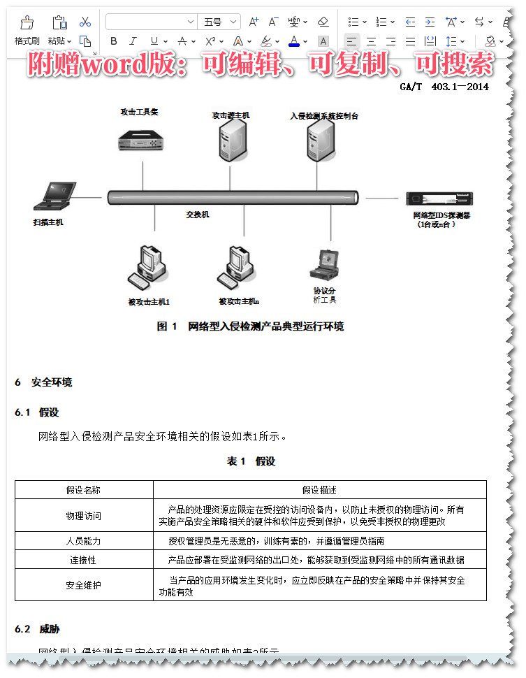 《信息安全技术入侵检测产品安全技术要求第1部分:网络型产品》(GA/T403.1-2014)【全文附高清无水印PDF+可编辑Word版下载】