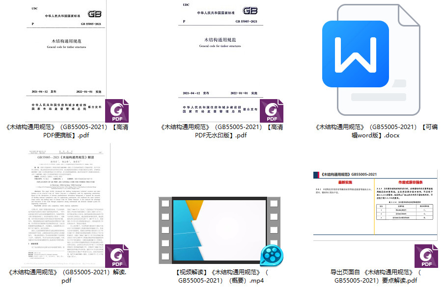 《木结构通用规范》(GB55005-2021)【全文附高清晰无水印PDF+Word可编辑版+MP4视频解读下载】