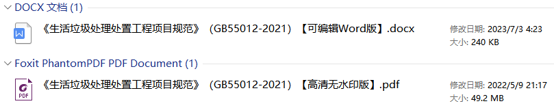 《生活垃圾处理处置工程项目规范》(GB55012-2021)【全文附高清无水印PDF+DOC/Word版下载】