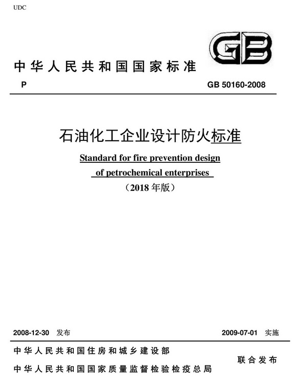 简介:为了防止和减少石油化工企业火灾危害,保护人身和财产的安全,制定本标准。本标准适用于石油化工企业新建、扩建或改建工程的防火设计。石油化工企业的防火设计除应执行本标准外,尚应符合国家现行有关标准的规定。