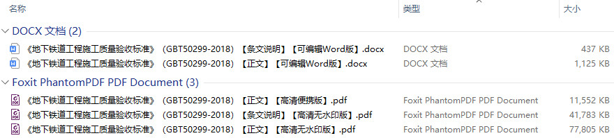 《地下铁道工程施工质量验收标准》(GB/T50299-2018)【全文附高清无水印PDF版+DOC/Word版下载】