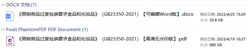 《限制商品过度包装要求食品和化妆品》(GB23350-2021)【全文附高清无水印PDF+DOC/Word版下载】