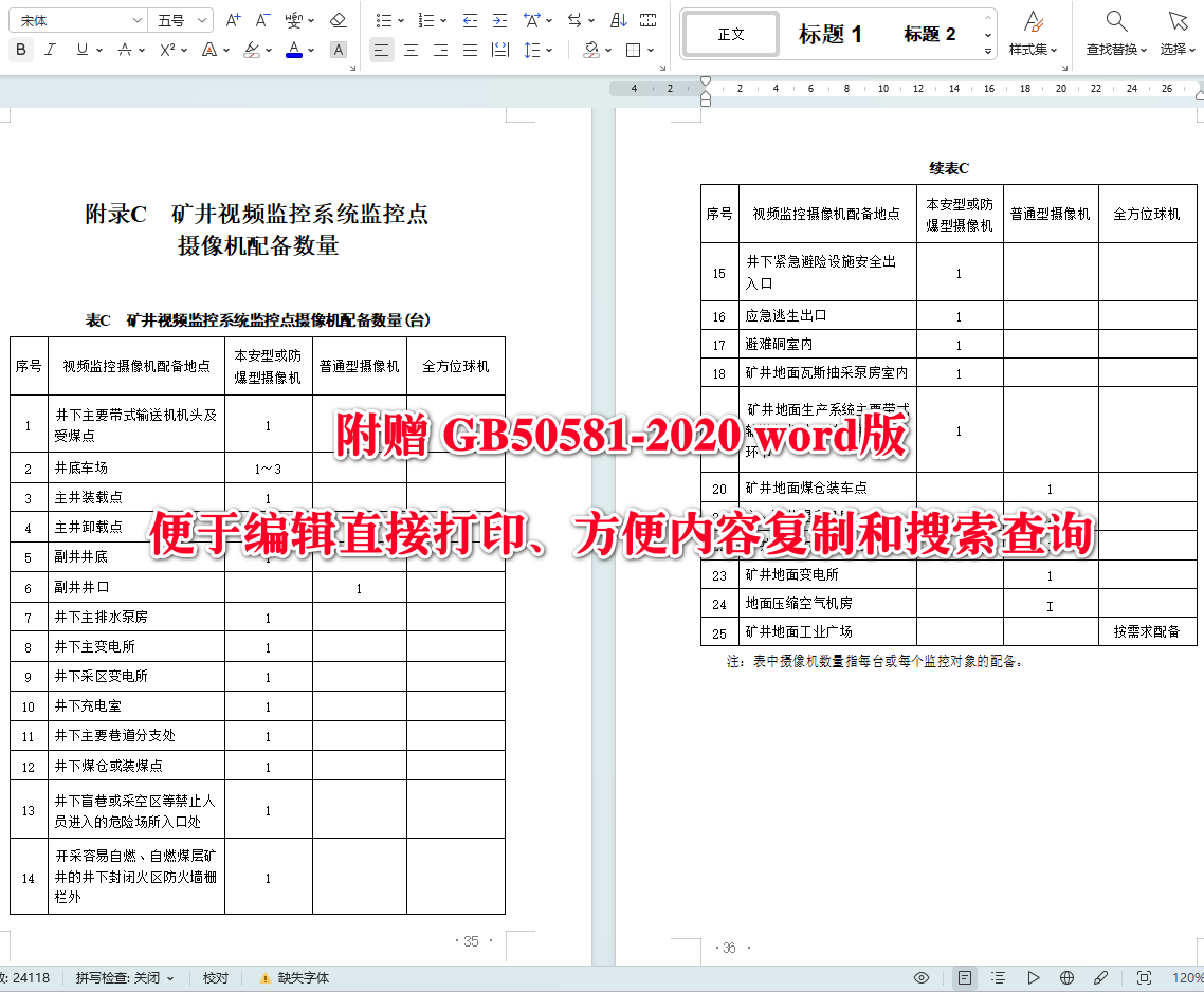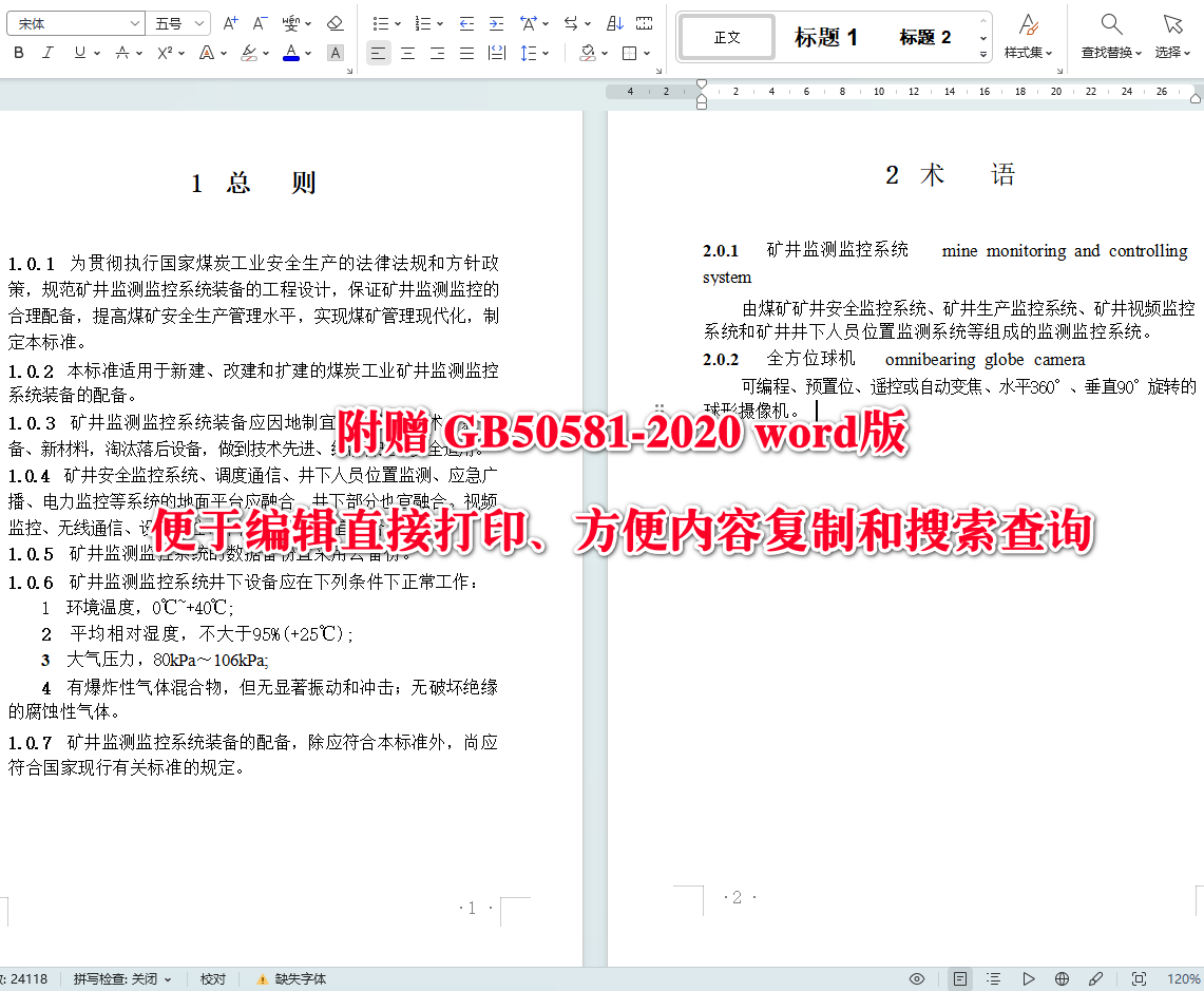 《煤炭工业矿井监测监控系统装备配置标准》(GB50581-2020)【全文附高清无水印PDF+可编辑Word版下载】