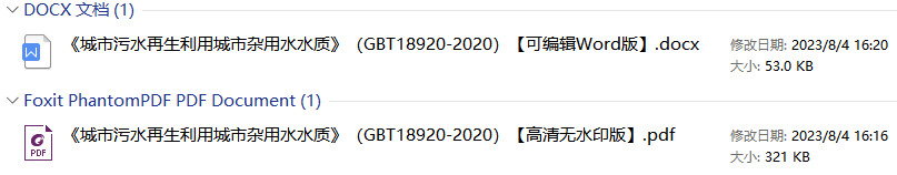 《城市污水再生利用城市杂用水水质》(GB/T18920-2020)【全文附高清无水印PDF+Word版下载】