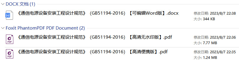 《通信电源设备安装工程设计规范》(GB51194-2016)【全文附高清无水印PDF+DOC/Word版下载】