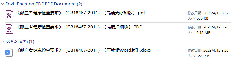 《献血者健康检查要求》(GB18467-2011)【全文附高清无水印PDF+DOC/Word版下载】