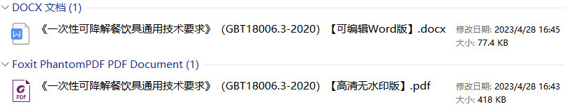 3、《一次性可降解餐 饮具通用技术要求》(GB/T18006.3-2020)【全文附高清无水印PDF+DOC/Word版下载】
