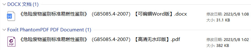 《危险废物鉴别标准易燃性鉴别》(GB5085.4-2007)【全文附高清无水印PDF+DOC/Word版下载】