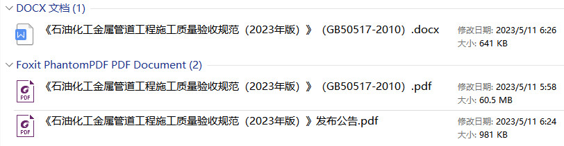 标准名称:石油化工金属管道工程施工质量验收规范(2023年版)
