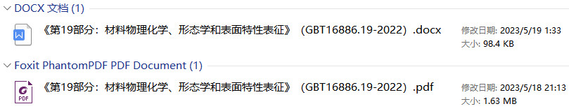 《医疗器械生物学评价第19部分:材料物理化学、形态学和表面特性表征》(GB/T16886.19-2022)【全文附高清无水印PDF+DOC/Word版下载】