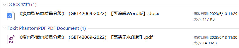 《瘦肉型猪肉质量分级》(GB/T42069-2022)【全文附高清无水印PDF+DOC/Word版下载】