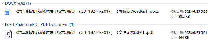 《汽车制动系统修理竣工技术规范》(GB/T18274-2017)【全文附高清无水印PDF+DOC/Word版下载】