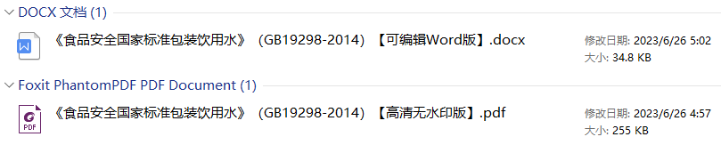 《食品安全国家标准包装饮用水》(GB19298-2014)【全文附高清无水印PDF+DOC/Word版下载】