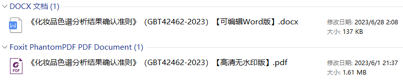 《化妆品色谱分析结果确认准则》(GB/T42462-2023)【全文附高清无水印PDF+DOC/Word版下载】