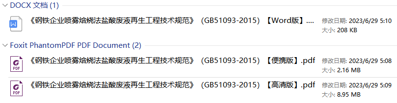 《钢铁企业喷雾焙烧法盐酸废液再生工程技术规范》(GB51093-2015)【全文附高清无水印PDF+DOC/Word版下载】