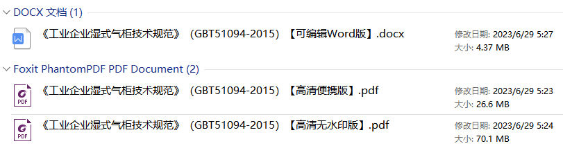 《工业企业湿式气柜技术规范》(GB/T51094-2015)【全文附高清无水印PDF+DOC/Word版下载】