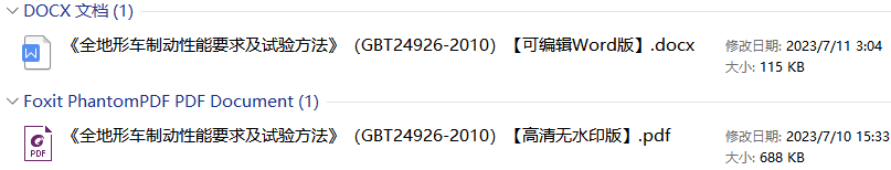 《全地形车制动性能要求及试验方法》(GB/T24926-2010)【全文附高清无水印PDF版+DOC/Word版下载】