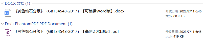 《黄色钻石分级》(GB/T34543-2017)【全文附高清无水印PDF版+DOC/Word版下载】