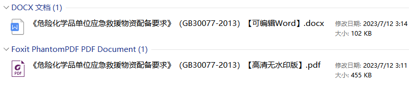 《危险化学品单位应急救援物资配备要求》(GB30077-2013)【全文附高清无水印PDF版+DOC/Word版下载】