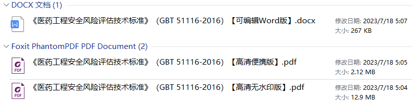 《医药工程安全风险评估技术标准》(GB/T 51116-2016)【全文附高清无水印PDF+DOC/Word版下载】