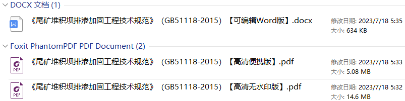 《尾矿堆积坝排渗加固工程技术规范》(GB51118-2015)【全文附高清无水印PDF+DOC/Word版下载】