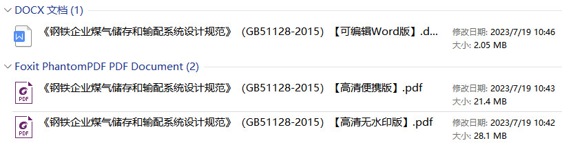 《钢铁企业煤气储存和输配系统设计规范》(GB51128-2015)【全文附高清无水印PDF+DOC/Word版下载】