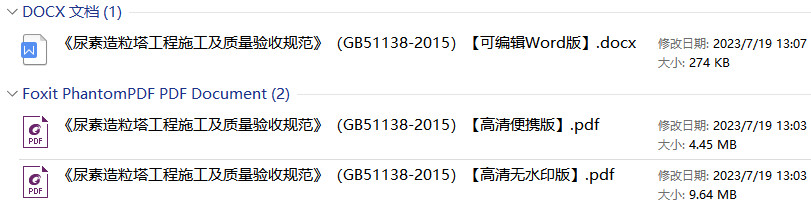 《尿素造粒塔工程施工及质量验收规范》(GB51138-2015)【全文附高清无水印PDF+DOC/Word版下载】