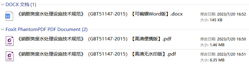 《硝胺类废水处理设施技术规范》(GB/T51147-2015)【全文附高清无水印PDF+DOC/Word版下载】