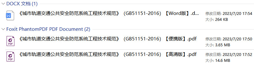 《城市轨道交通公共安全防范系统工程技术规范》(GB51151-2016)【全文附高清无水印PDF+DOC/Word版下载】