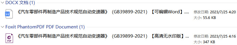 《汽车零部件再制造产品技术规范自动变速器》(GB/T39899-2021)【全文附高清无水印PDF+DOC/Word版下载】