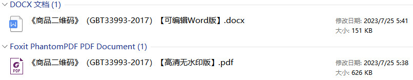 《商品二维码》(GB/T33993-2017)【全文附高清无水印PDF+DOC/Word版下载】