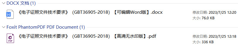 《电子证照文件技术要求》(GB/T36905-2018)【全文附高清无水印PDF+DOC/Word版下载】