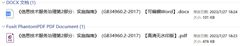 1、《信息技术 服务治理第1部分:通用要求》(GB/T34960.1-2017)【全文附高清无水印PDF+DOC/Word版下载】