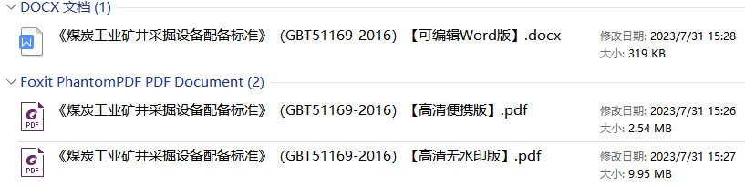 《煤炭工业矿井采掘设备配备标准》(GB/T51169-2016)【全文附高清无水印PDF+DOC/Word版下载】