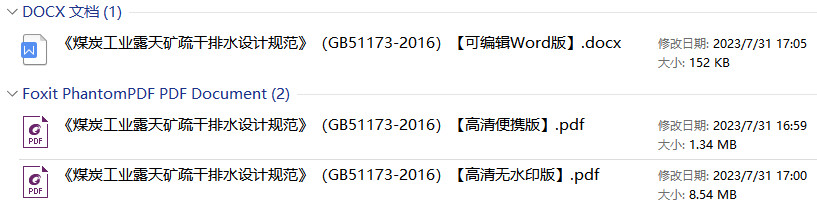 《煤炭工业露天矿疏干排水设计规范》(GB51173-2016)【全文附高清无水印PDF+DOC/Word版下载】